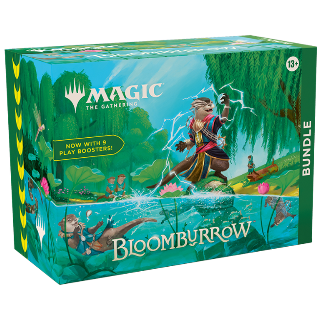 • BUNDLE CONTENTS—9 Bloomburrow MTG Play Boosters, 1 Traditional Foil alt-art card, 30 Land cards (15 foil, 15 nonfoil), 1 Spindown life counter, 1 card storage box, and 2 reference cards