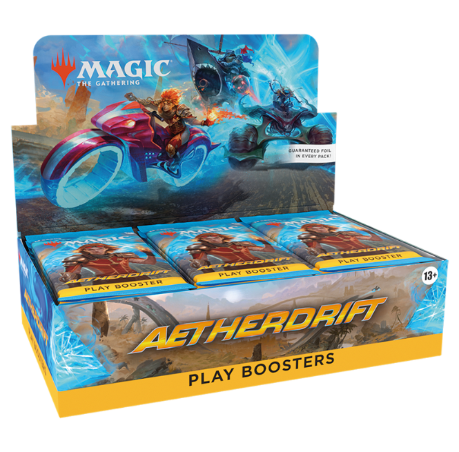 • PLAY BOOSTER BOX CONTENTS—A 2-card Box Topper + 30 Aetherdrift Play Boosters, each containing 14 MTG cards and 1 Token or Art card