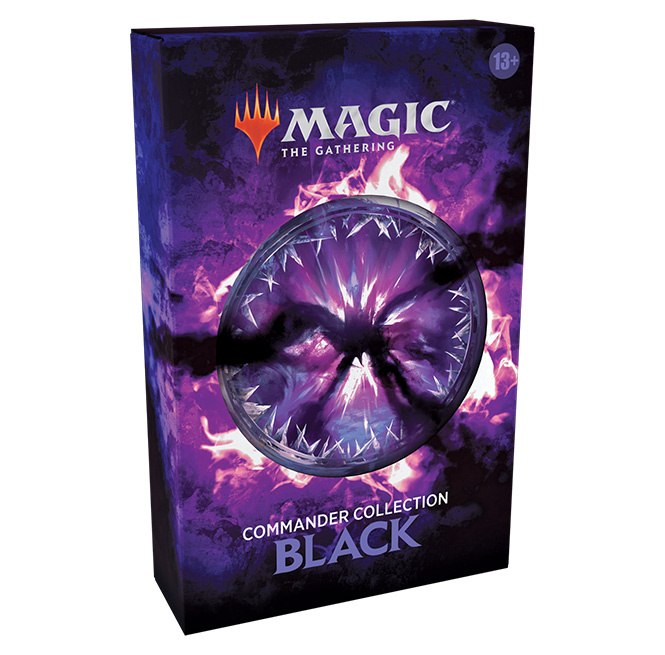 Commander Collection: Black is a boxed set of eight reprinted cards themed to one color and what it does best—in this case black, the color of ruthlessness and opportunity. These cards have been selected to showcase iconic black strategies in Commander, and each one has been given brand-new art with loads of references to popular legendary characters. They'll be right at home in your favorite black deck alongside their legendary counterparts!